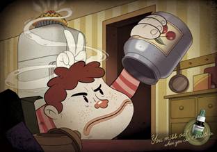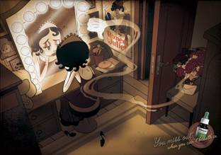 这一则Vibrocil呼吸道药物的系列平面广告,就是把鼻塞这种症状表现到位。鼻塞的演员闻不到鲜花的香气,以为自己无人欣赏而产生徒劳的苦恼;鼻塞的时尚先生闻不到擦肩而过的美女体香,而错过转瞬即逝的美妙邂逅;鼻塞的小子闻不到蛋糕的香气而翻箱倒柜都找不到甜品的踪影,这实际上是让人困窘的情况。文案:you miss out,when you can’t breath in(错过好事,全怪鼻塞)。企业画册设计公司,影视广告制作公司