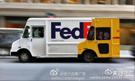 这是一张出色的出击竞品广告。众所周知,Fedex的死对头DHL(敦豪快递)家标志颜色是黄色的,所以,后面那半个车头是谁家的,你懂的。除了赤果果的调戏,Fedex还配上一句广告词:Fedex,always first!(Fedex联邦快递广告——总是领先某些快递公司),干脆是赤果果的挑衅了,联邦快递有点不厚道哦~~ CI设计公司,VI设计公司,标志设计公司