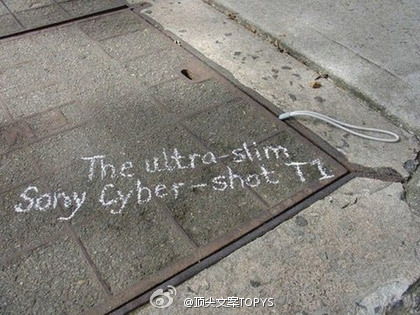 合好的下水井盖还能掉进东西?当然,索尼超薄相机就是如此轻薄,比井盖缝隙还窄,要是没有手绳绊住,哪里还能找回失物?这则表现极致轻薄特色的广告让人印象深刻,瑕疵在于误导性:一旦掉了就再也找不到了。