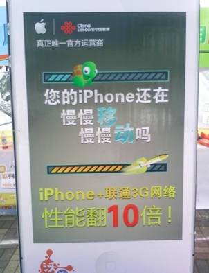 自从联通绑上iphone这架战车,它就告别了自己隐忍发展、暗地竞争的姿态,变得雄心勃勃,火药味十足。从一月份的关公广告暗讽移动速度慢,到最近指名道姓的讽刺——“您的iphone还在慢慢移动吗?”