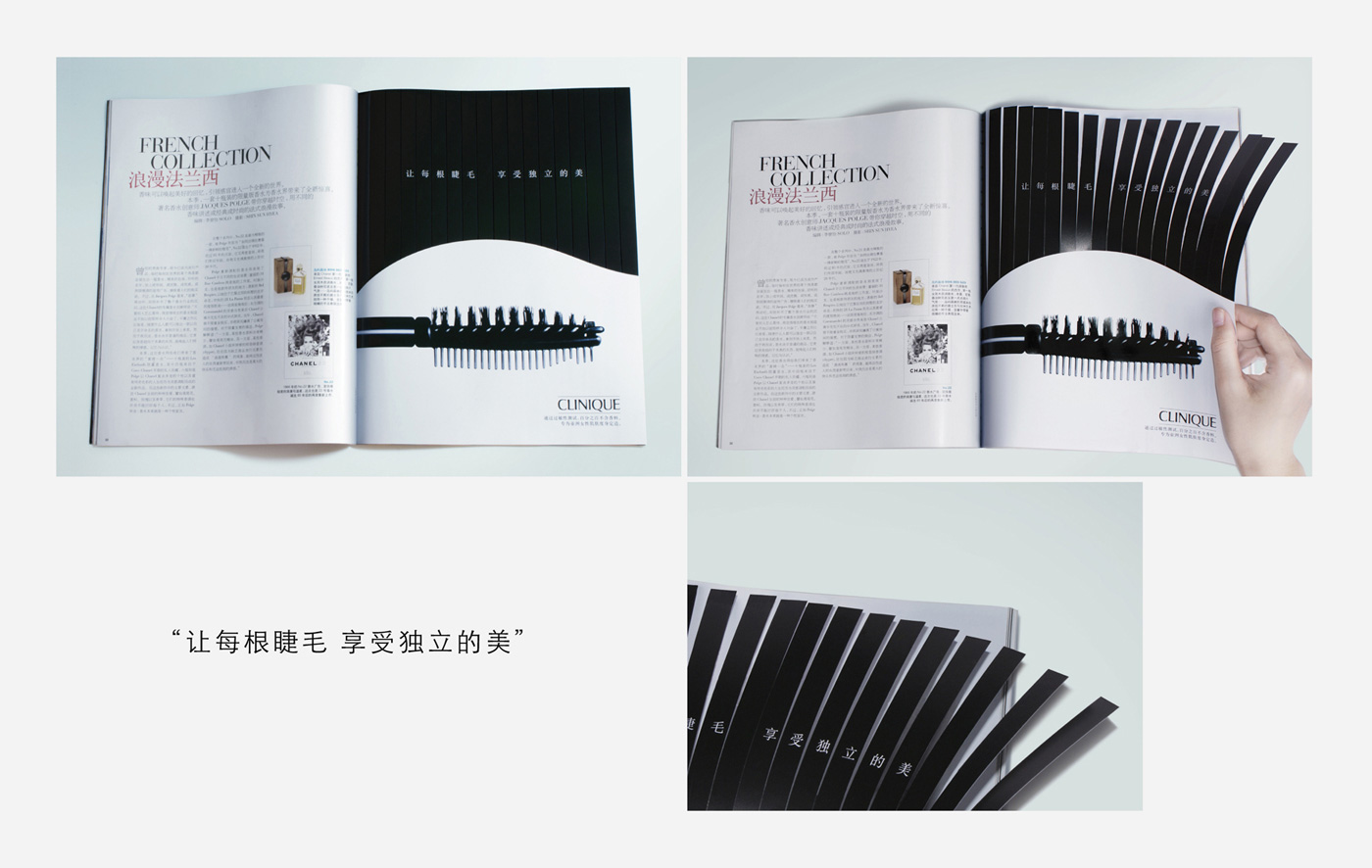 这个睫毛膏广告将再次带来这种感受。是不是不曾想到,这种创意还可以延伸到杂志内页上?几刀剪出上帝赋予美人的长长睫毛,剪出令人回味的精致诱惑。 武汉企业画册设计公司,武汉影视广告制作公司
