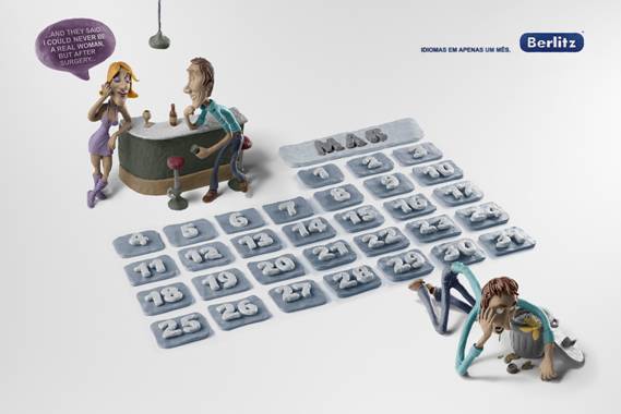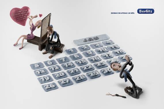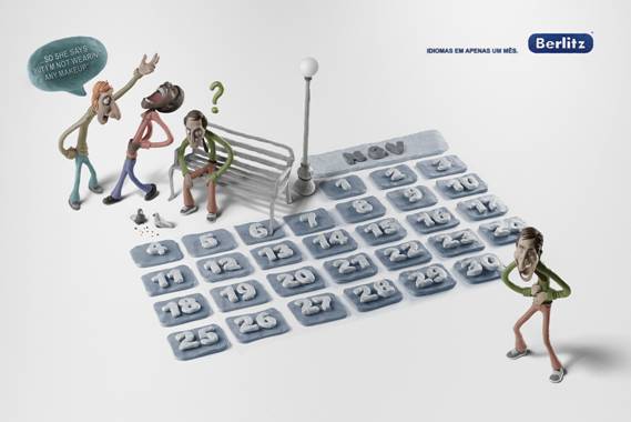 广告的创意手法挺夸张,把语言障碍用日历的形式表达出来,时间夸大到一个月。与之相应,采用陶土人偶材料,很是有趣。广告从创意到执行都充满小幽默。武汉广告策划公司,武汉广告公司,武汉广告设计公司