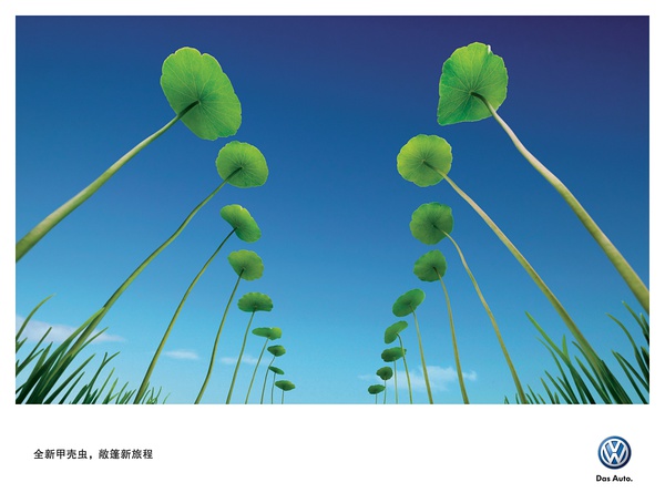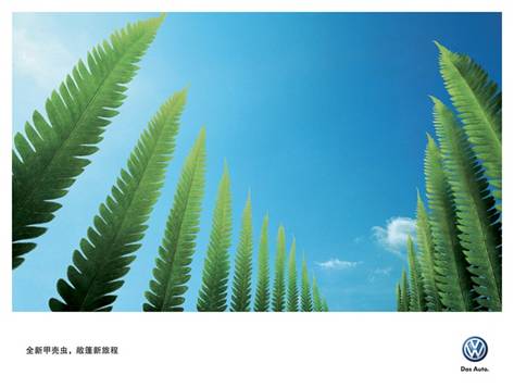 2011 One Show Design国际广告奖金铅笔大奖中,中华区的唯一金铅笔奖,就是小即是美的延续。获奖者是为大众敞篷甲壳虫设计海报的DDB公司,他们将汽车甲壳虫还原成了昆虫甲壳虫,营造了一次奇异的大自然之旅。直观有趣的创意使顾客情不自禁地跌进这片花花世界,在绿意盎然的世界里,驾着小小甲壳虫横冲直撞,两旁的花草如同巨树开道,车顶的敞篷将蓝天白云美景统统载入车内……武武汉企业画册设计公司,武汉影视广告制作公司汉CI设计公司,武汉VI设计公司,武汉标志设计公司