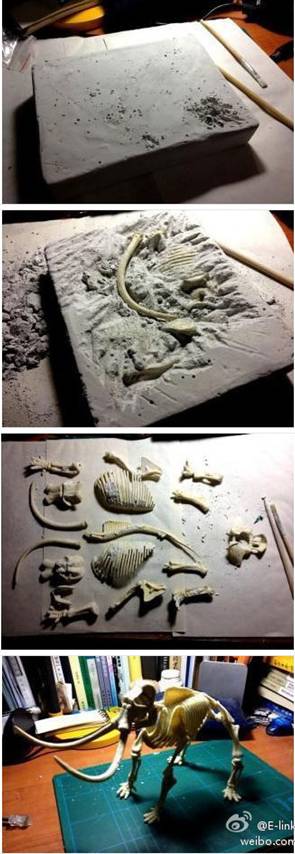 现在有种非常寂寞的儿童考古玩具:一块石膏,一把刷子。玩法是模仿考古学家,用刷子一层层地刷掉石膏,经过耐心的挖掘和细致的组装,最终会收获一个恐龙化石。