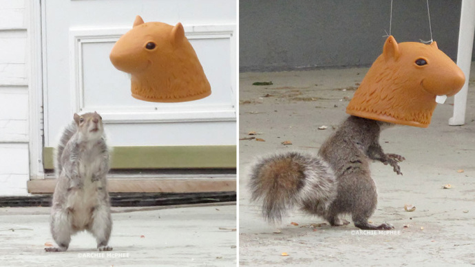 这个松鼠头套,也是一个让人笑破肚皮的报复。它的具体使用方法是,把这个头套挂在后院,在里面塞上松鼠食物。接下来的工作就是悠悠地坐着——等待松鼠把脑袋伸进去!然后美国人就能在观赏中,感受到一种羞辱它们的快乐!一吐往日积攒的怨气!武汉广告公司,武汉广告设计公司,武汉企业画册设计公司