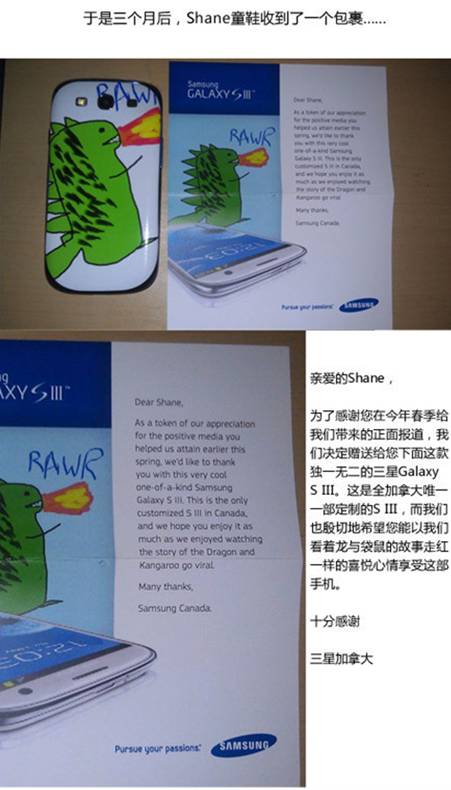 以营销的眼光来看,双方都是赢家。加拿大的Shane同学获得了全球独一无二的的「喷火龙」版 Galaxy S III,忠实三星粉丝的的成就感得到了充分的精神肯定与物质满足,而三星加拿大也在Shane同学晒出来的这段故事中,获得了意想不到的关注和美誉。不过,以市场的观点来看这段互动,反而少了很多童趣与感动呢!武汉广告公司,武汉广告设计公司,武汉企业画册设计公司