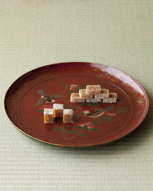 日语中的お菓子(okashi)意为零食,点心。如下的果子摘自茶人木村宗慎(Kimura Soshin)的“一日一菓”,他希望通过每日连载,展现日本各个时期的精美器皿、与气候器皿相适宜的精致日式菓子,使人借以感悟体验四季、自然、生命之美好。