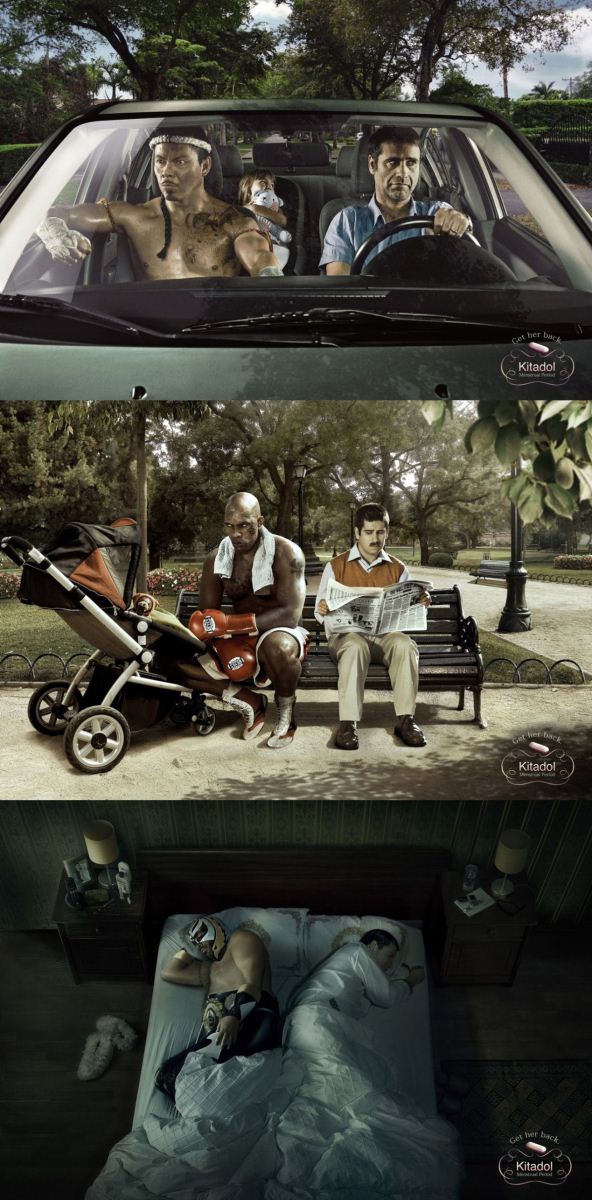 取悦男人的广告,更有一桩提升销售额的大好处。对于天生难有性价比概念的男人来说,一个带休息间的商场,只要自己能享片刻清闲,商品再贵也不要紧。至于Kitadol,只要能让往日那个正常温柔的她回来,再贵都划算!