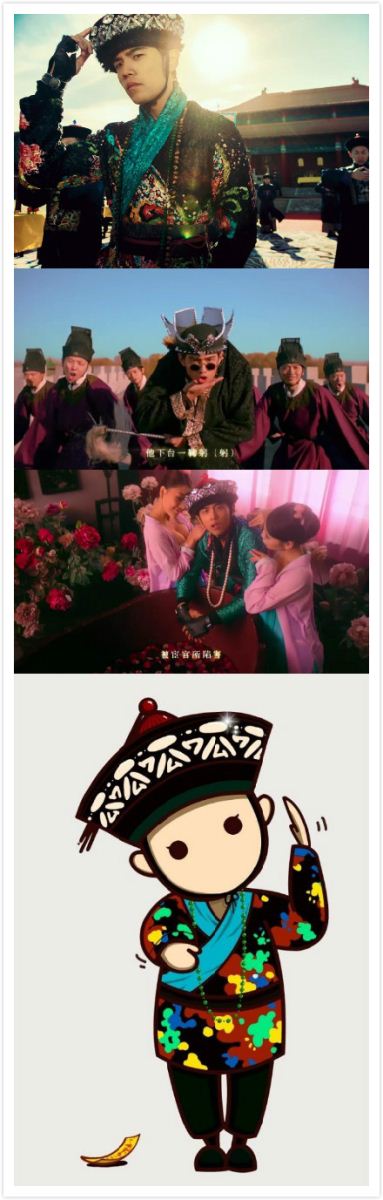 巧的是,周杰伦在这个当口,发表了他出道十二年以来的第十二张专辑,《十二新作》。承继《双截棍》、《本草纲目》的惯例,专辑里仍旧包含了一首古风嘻哈:《公公偏头痛》。这正是一首以歪脖子为主题的歌曲,不过这次的歪脖子不是为了拯救地球,而是发生在一个贪财好色、陷害忠良、终遭背叛的宫廷大公公身上的故事。