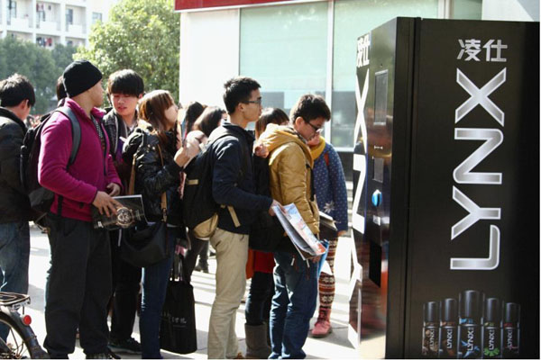 没错,如今的许多中国男生往往止步在欣赏电脑以及杂志上的‘幻想女神’,而没有足够的勇气走出家门,去接触真正的世界,真正的异性。而凌仕向来倡导男生大胆自信地与异性交往!通过这个有趣的活动、借助自动售货机这个有趣的环境媒体道具,不仅鼓励了当代年轻人离开幻想世界,勇敢寻找现实中的真爱,更是凌仕品牌影响力的有力巩固和形象体现!