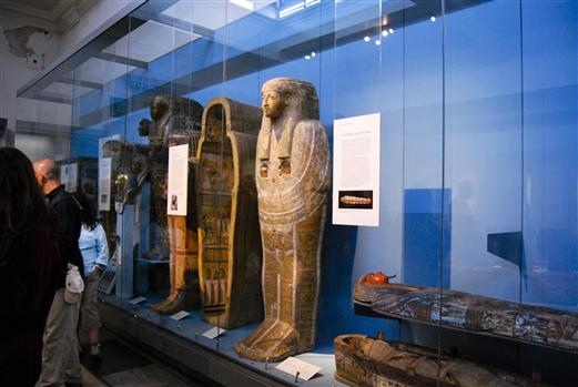 这里还有古埃及神庙的断墙、基门、木乃伊和公元前2600年的人头塑像等。