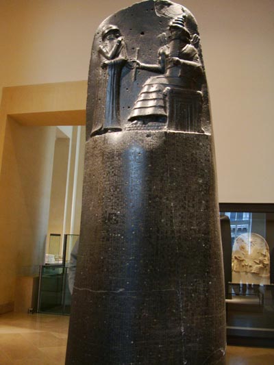 在“东方古文博物馆”第四厅,有一件我们比较熟悉的文物:《汉谟拉比法典》,该法典出自公元前2000年左右的巴比伦,共282条,以锲形文字刻在一块黑色玄武岩上。