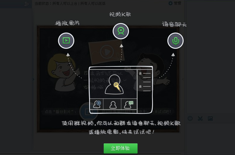 QQ群的右侧,已经从群公告更新成了各种群功能。10个功能中,腾讯主推群视频。腾讯群视频并非新产品,QQ2012版本中就已发布,当时的叫法是“视频秀”,那时的界面还很小清新。在2013年到来之后,又加入了“献花”功能。武汉广告公司,武汉广告设计公司,品牌设计公司,平面设计广告公司