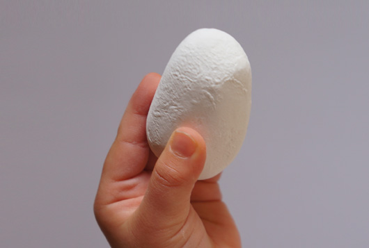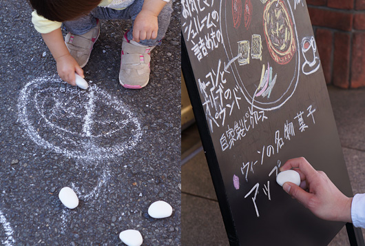 小石头造型的粉笔。小时候常用小石头涂鸦玩耍。希望涂鸦时的这份愉快感,以及安心感,可以一直延续下去。