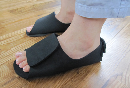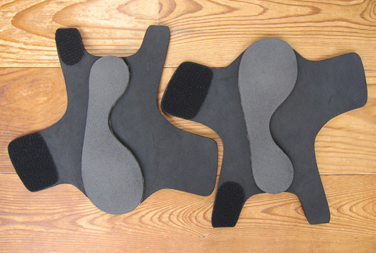 由和潜水衣相同材质的发泡橡胶素材制成。使用魔术贴,组合成轻盈舒适的鞋子。因材质具有伸缩性,穿起来更服贴,也适合脚部肌肉较弱的老年人或残障人士。穿脱简单,对看护工作而言也很方便。打开后,就是一块布,不占空间,还可以作为飞机内穿的鞋子使用。出差、旅游时,也携带方便。