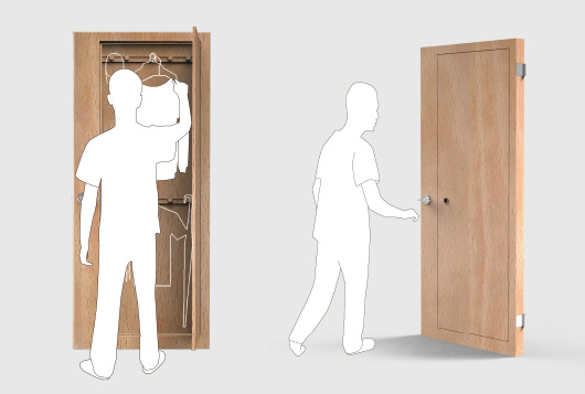 近年来,在少子化、房价高的趋势影响下,使得小平方、少房数的房屋热销。近期更是掀起鸽子宅风潮,小平方的房屋当道,成为房屋市场的主流。如何在有限的空间下利用居家收纳技巧,创造更大的空间至关重要。为了让房间内的空间可以有效利用,重新思考了「门」的构思。将「收纳」与门结合,确保门中的收纳空间。