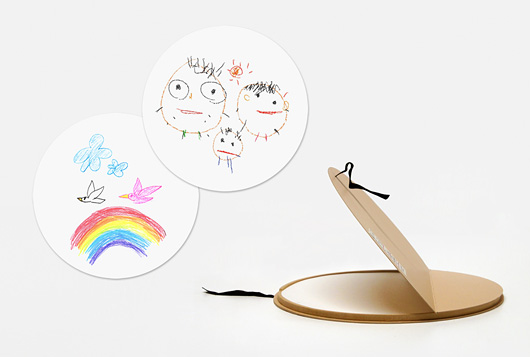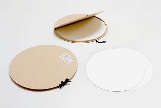 儿童用圆形画图纸。不是四方形,而是圆形的图画纸,可以更自由地描绘构思。 画完的画,可放在厚纸盒内长久保存。是为了让孩子们可以用他们那种无局限性的、自由自在的想法来描绘自己的梦想而设计的一件作品。