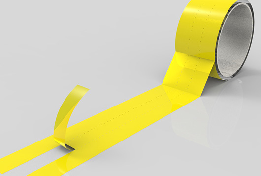 胶带中间有两条压线,且压线中间没有粘性。这样的设计,让在没有借助工具的情况下,就可以轻易的沿着压线撕开胶带的中间部分,箱子就轻松地打开了。