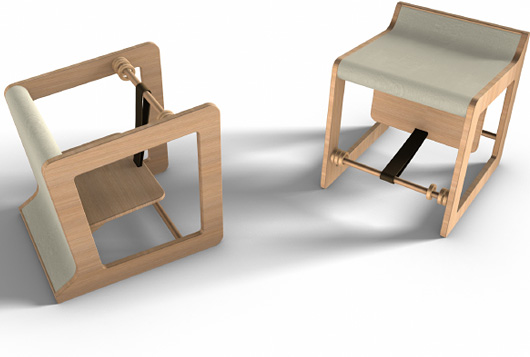 现代人的生活,还是要从先人的生活智慧中去发现。在农业社会中,生活简朴,一物多用,父母农忙时只能将孩童放在可固定住小小身躯的座椅中自己玩耍,待大人忙完时,可坐在同一张椅子上,陪伴自己的小孩。作者将这样的概念初衷加以现代化,在材质、线条、设计上做了调整,更符合现代生活所需,保留亲子互动的真挚时光,是件让人看了觉得幸福的作品。
