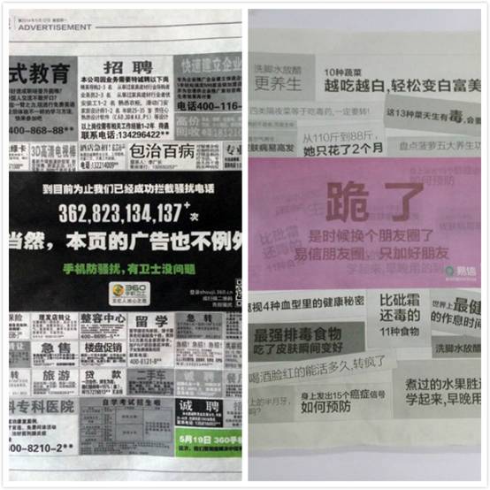 本次抄袭案例,由网易的易信倾情提供。易信软件本身当然脱不开微信痕迹,还贬了微信一把;这系列报纸广告, 80%的创意复制了360手机卫士。话说360作为“复制”大户,这次也中枪了。