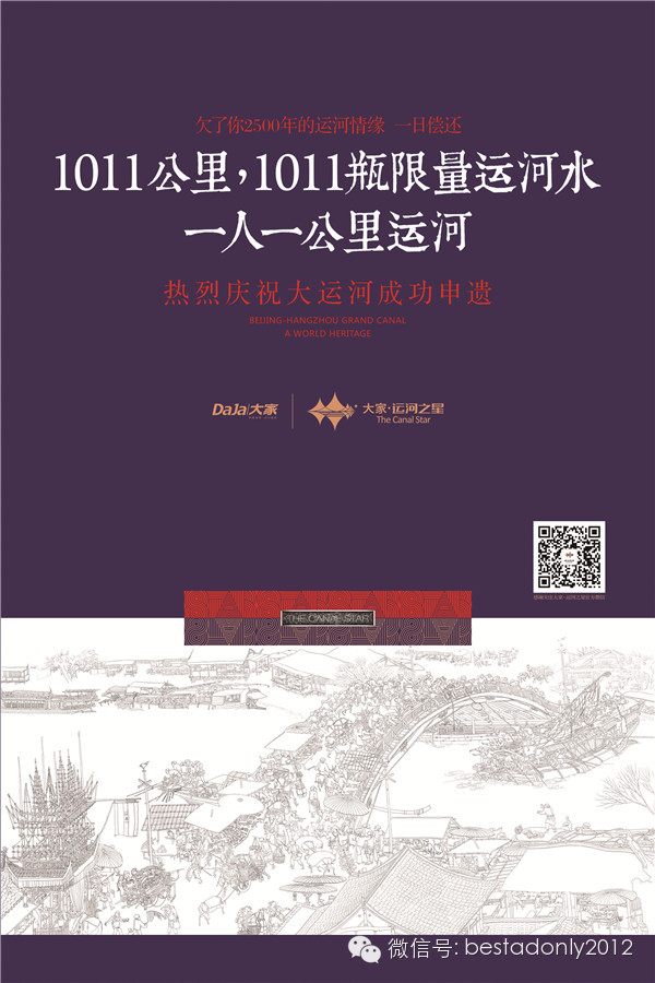 3、大运河的人文历史背景,决定了我们不可能采取恶意炒作或者空泛的庆祝来达成目的。并且,项目推广尚处于前期,对仅作为项目区域属性的运河,无条件地投入成本,其实并不高明,也未必能有丰厚的回报。