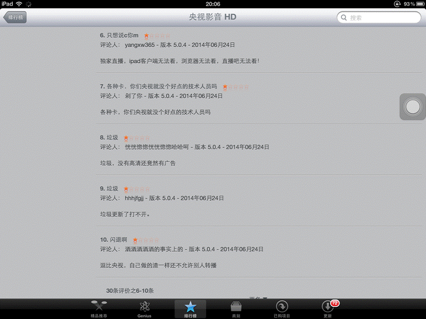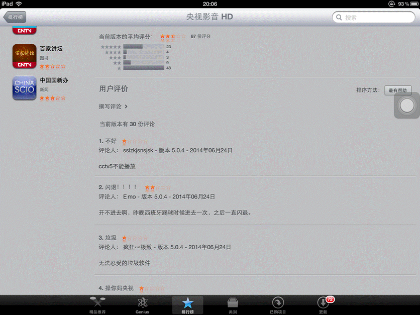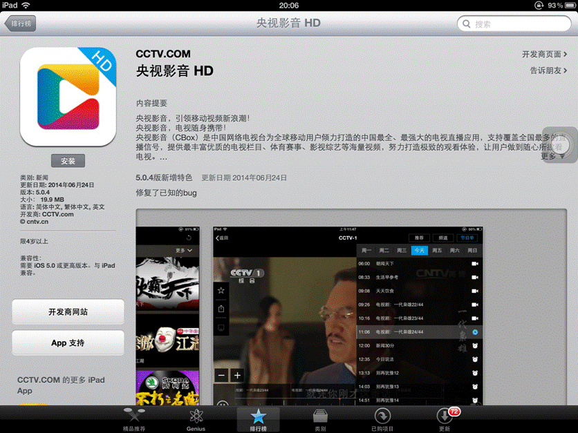 这个夏天,央视影音毫不费力就冲到(或许是买到)App Store榜首,并在下载榜前六停留了整整一月。