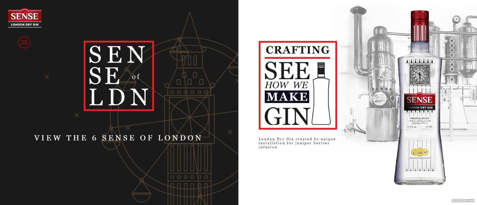 杜松子酒,诞生于荷兰,兴盛于英国,这个早期是利尿药酒的东东,最后居然成为鸡尾酒中使用最多的基酒,纵观这个页面设计,主体鲜明,指示清晰而伦敦元素十足。我没有喝过GIN酒的人,居然有了尝试的冲动,这就是设计的力量吧