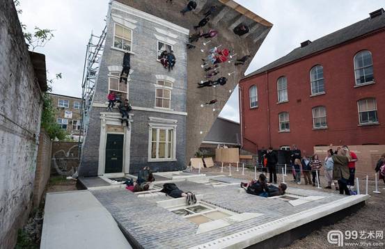 这个神奇泳池并非埃利希首次创作,他曾于1999年在纽约MoMAPS1和威尼斯双年展上展示过类似的泳池。2013年,埃利希还曾在伦敦东部街道一栋维多利亚晚期建筑上创造幻觉作品:通过巨大的镜子,客人们躺在地上,却会看到自己正吊在墙壁上或正在屋顶上爬行