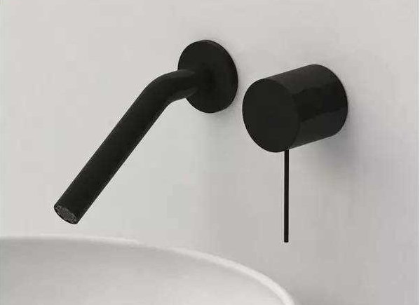 国内水龙头专业大厂巧时代出品的这款 Lucky 7 壁装式水龙头的几何造型十分简洁,亚光黑的表面更显质感。