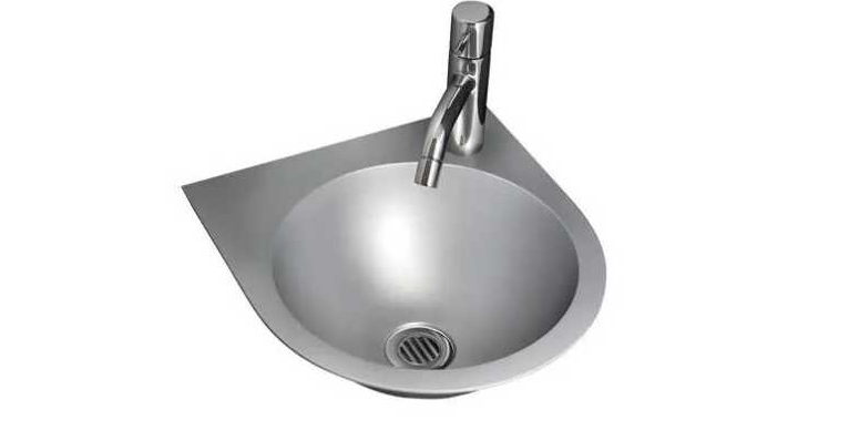 这是由日本三和公司(SANWA COMPANY Ltd.)设计的一款不锈钢洗手盆。顶部不锈钢面板只有 3 毫米厚度,加上一个圆形水槽能够有效的利用狭窄的洗手空间。