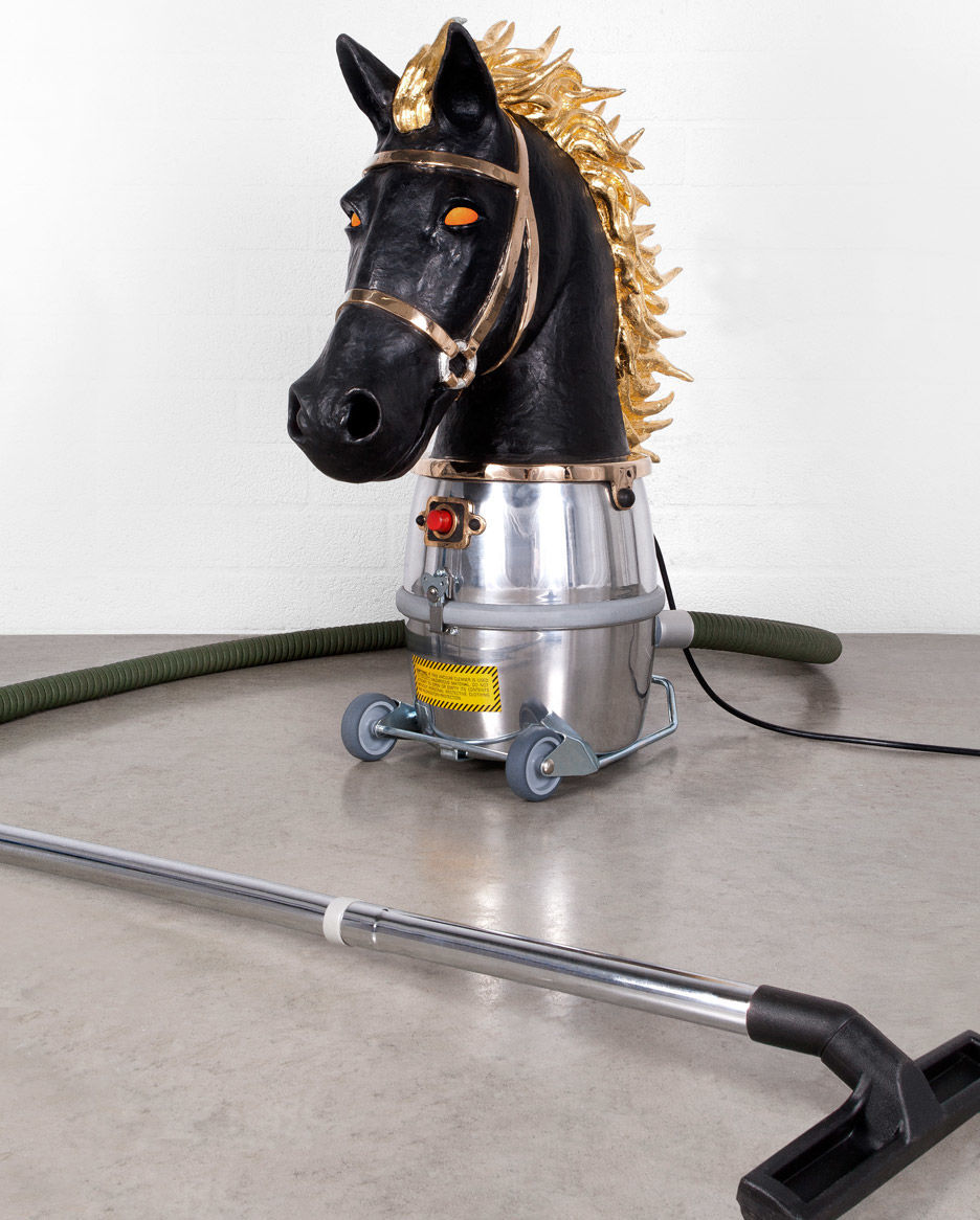 这件半身马像(Horse Bust)是为了致敬美国的波普艺术家 Jeff Koons,底座加上了 Nilfisk 的吸尘器。当吸尘器打开时,马的两只眼睛将被点亮,鼻孔中也会有空气喷出。