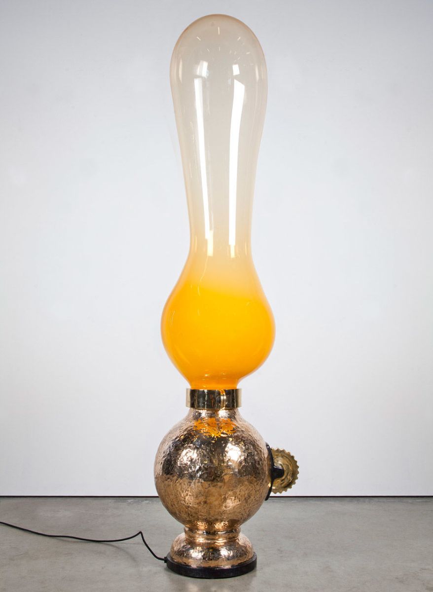 这个巨大的渐变色玻璃制品叫做 Standing Bubble,不晓得你们有没有见过旧式的煤油灯,Standing Bubble 就是仿照它的形状做的。