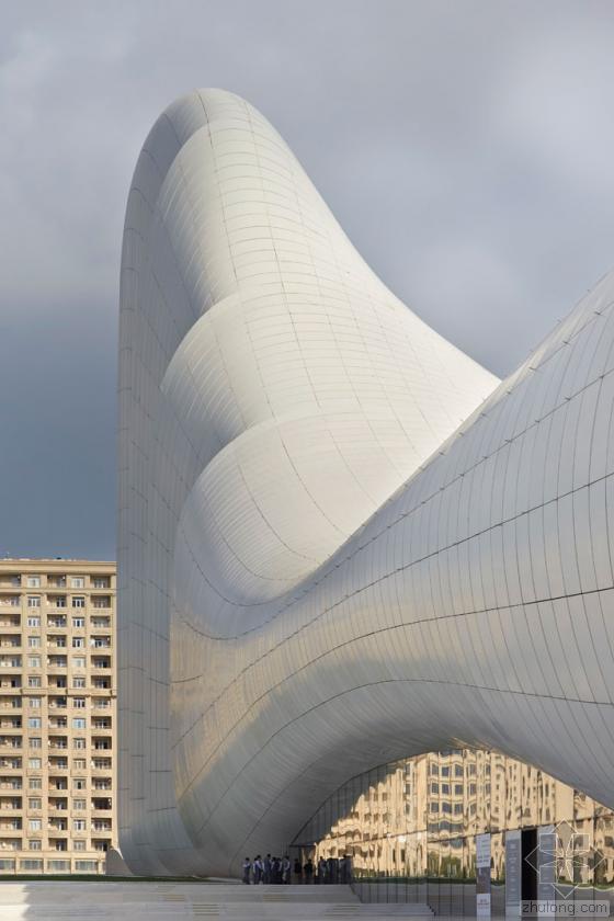 这座流线型的建筑不断从地面向上延伸,曲线形的外观表皮将建筑各功能区有效分割,并很好地保留了其各自的私密性。所有功能区域以及出入口均在单一、连续的建筑物表面,由不同的褶皱堆叠呈现。这种流线的堆叠有机地连接了各个独立功能区,与此同时,不同的褶皱形状也赋予每个功能区以高度的视觉识别性和空间区隔性。