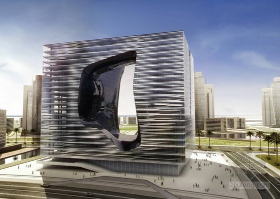 该建筑的四周有宽阔的人行横道,为行人提供充足行走空间。在建筑内部有两个独立的大堂,能够最大限度地将室内与室整合起来。该建筑共有21层,地面的空间远远看去像一个透明开放的正方体区域,其中包括零售区和休闲区。“掏空”部分的边缘处为不规则的波浪状。这个建筑将成为当地新的地标性建筑,四周的玻璃幕墙为光线提供一定程度的反射率,在光线较暗的夜晚就像一个激光透的洞穴。
