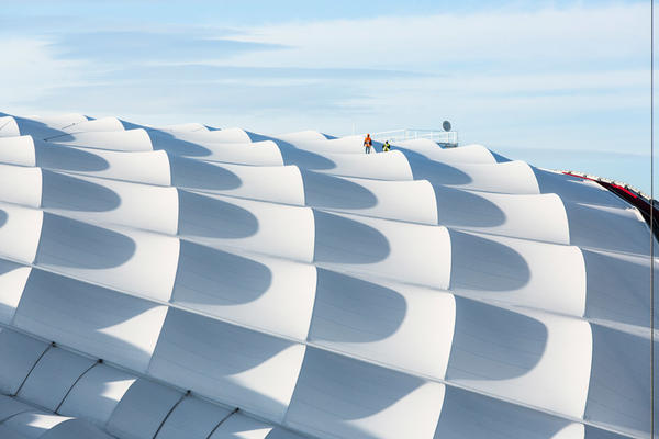 他们使用了一种经过特氟龙浸渍(teflon-impregnated)的玻璃纤维材料建造屋顶,需要的护理很小,可以让自然光线过滤到室内但又阻挡了日晒,同时使得声音能够保留在室内,让现场气氛更加热烈。