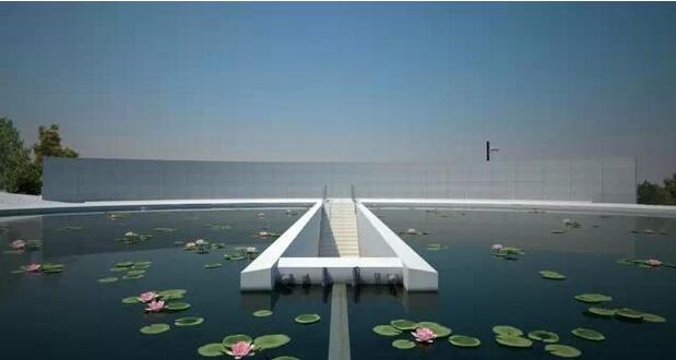 真言宗本福寺水御堂建于1991年,位于日本兵库县南部淡路岛﹐兴建于古建筑本福寺后面的山丘之上。御堂其实是藏在莲花池之下﹐要进入建筑物﹐需要在莲花池中央的楼梯拾级而下﹐犹如进入水中。