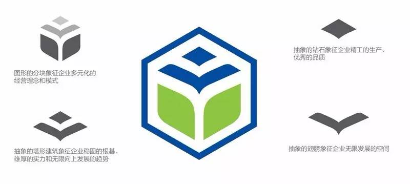 新调整的造型包含YJ字母,增强企业品牌记忆;飞翼之塔代表企业根基深厚、志在千里;颜色补充绿色,进一步加强树叶造型的环保意义。