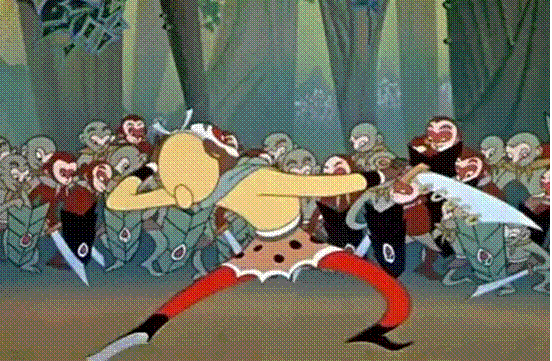 原型定下来之后,动作上却遇到了瓶颈。没有人了解猴子的动作是什么样子的。为了让“孙悟空”更加逼真,画师们纷纷放下画笔,跑到戏剧学校、文化广场,细细观察京剧演员的身法动作,舞台姿势。