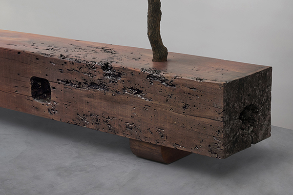 在急促发展的城市,生活的本质是什么?香港以发展的名义,不停地清拆旧建筑,摒弃旧物,弃之如敝屣。然而这些旧物都「无用」了吗? 武汉标志设计公司,武汉VI设计公司,武汉画册设计公司,武汉平面设计公司武汉广告公司,武汉广告设计公司,品牌设计公司,平面设计广告公司 湾仔码头清拆时,大量的防撞木将被弃置于堆填区,最后幸被本地一间木厂收留。这些本来是婆罗洲山打根杪木,强度及耐用性很高,是造船,地板,桥梁,甚至家具的上好的木材。因长时间浸泡在海水,被微生物侵蚀,木材表面有着独特不规则的孔洞;加上日晒雨淋及风化,形成天然斑驳的颜色。山外正是使用了这些「无用」的防撞木材,设计及制作出这张长凳。 Otherwhere Studio山外工作室设计这张长凳时,回归物料的本质,尽量地利用了防撞木浑然天成的美感:含蓄的比例,沉浑的线条,拙朴的造型,天然独特的表面。运用最简单结构,结合原木树枝(在台风过后拾得),使其呈现丰富细腻的意象:时间的累积就是生活,生活的累积就是历史;历史就是斑驳的呈现,伸延出来的树枝就是生命力。 生活不断地转变,历史不断地累积。没有什么可以长存,没有什么是完成的,也没有什么是完美的。山外的设计从本质出发,由器具细看生活的痕迹,由生活痕迹感受自然的生命精神。