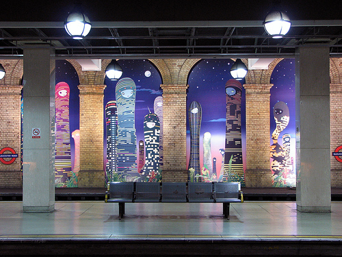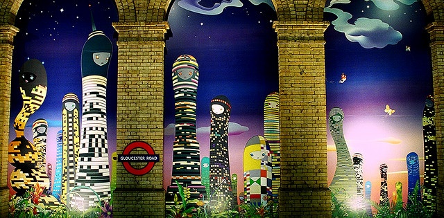 2007年,她在伦敦格洛斯特路(Gloucester Road)地铁站画了一组名叫《城市绚丽夺目,山区悄声无息》(city glow, mountain whisper)的画(2006-2007)。月台的十七个拱门每一个里都由精心绘制的风景组成,逐渐的从日到夜与从城市到农村的变化着。这个作品暗示了 地球的一个乌托邦式的设想,这是在青岛千穗作品的核心。