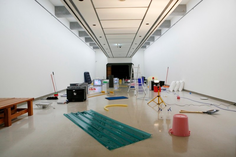 田中的录像和装置作品探讨了物品和行动之间的关系,他的视频记录了伴随着日常物品的简单的表演,如刀切蔬菜,将啤酒倒入杯中,一把雨伞和他 ’吹面粉的过程‘(2010)系列作品。看起来似乎并没有发生什么,但强迫性的重复和对细节的关注迫使观众注意到这些日常生活中的存在的世俗的、不被注意 的现象。