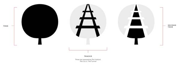 其实并不需要设计公司进行过多的解释,我们看 到这个新形象时都可以理解设计人员的许多意图。在我的眼中,这个标志出于本能,似乎是随手拈来(只是似乎),铁路与树的结合恰到好处,而且相当直观,其最 后的形象让人感觉这已经是最佳的处理方式。原有标志可能仍然沉浸在这段铁路的古老历史中,虽然优雅,但实际上并无法传达出这个公共项目的很多内涵。