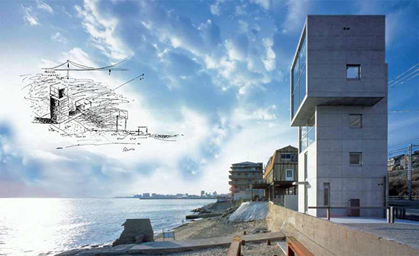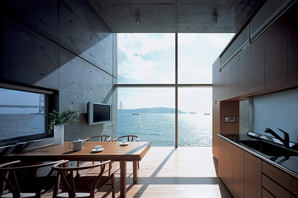 踱步在顶层起居室,远望海平面,仿佛海水就在脚下拍打,这也许正是安藤设计的意图之一吧。别看这么一座简单的小房子,据说设计初也做了20几版的方案