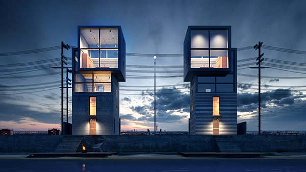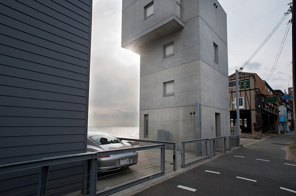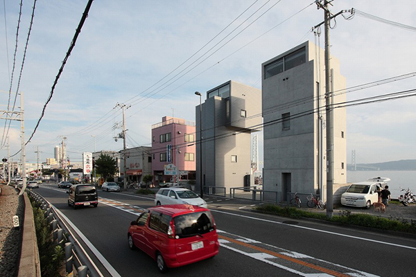 这对超级无敌海景房位于日本神户市一处海滩与铁路之间的荒地上,距离海水线仅有65米的距离。每栋房子的基地面积只有不到五米(4.75米)见方。这样苛刻的设计条件下,也许只有大师级的建筑师才能化腐朽为神奇,在不起眼的地界创造出大惊喜。
