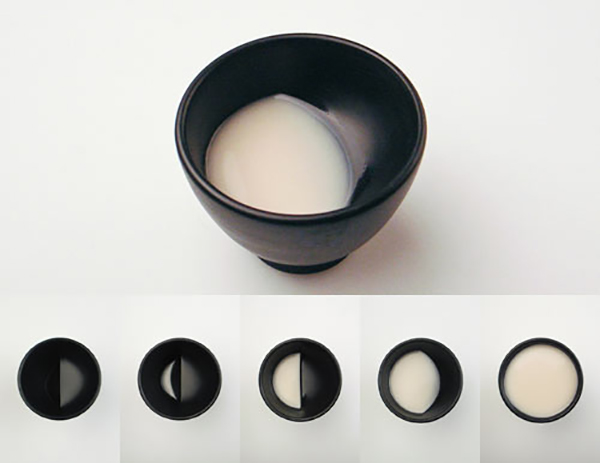 这款杯子设计不仅以月亮为灵感,还可以体验月亮的阴晴圆缺。Tale Design 工作室将这款杯子的杯底打造成阶梯状,如果倒入牛奶、米酒等乳白色液体,就会根据阶梯的不同分布呈现出新月、弦月、凸月、满月等月相。在试用同时也富有趣味。