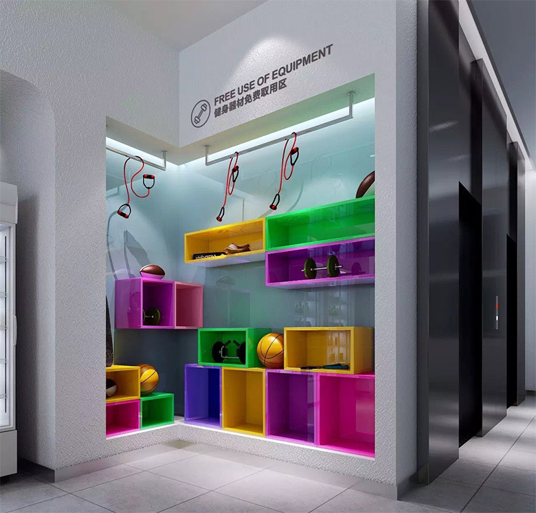 在酒店空间导视系统上,新7天采用极简的线型设计,并用萌趣化的图标和明快的色彩搭配,赋予空间提示、指向等导视信息以趣味化的内容和极具时尚性质的表现。