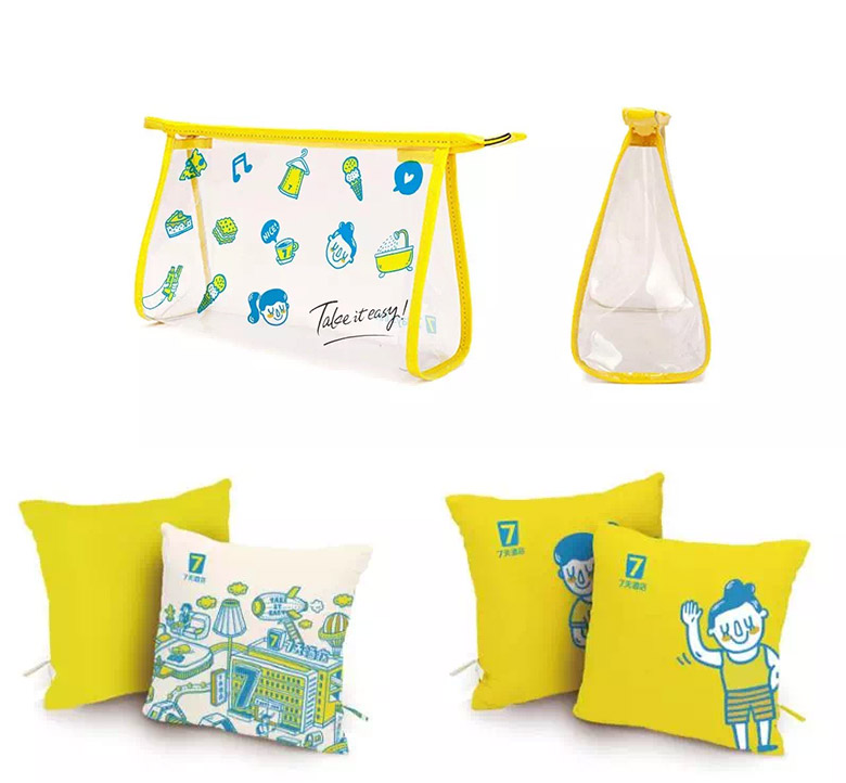 作为本次形象升级亮点——萌趣插画衍生品的诞生无疑是打开了7天酒店与消费者沟通的新窗口。全新7天把一系列可爱的插画元素和人物应用在客用大口径带盖纸杯、旅行洗漱包和小抱枕等日常用品上,不仅可爱好玩还足够实用。衍生品的开发不仅有利于7天传达自己的品牌理念,拉近与消费者的距离,还是7天升级后的营销新布局,将出现在24h便利购的柜台上,以商品的形式与消费者见面。