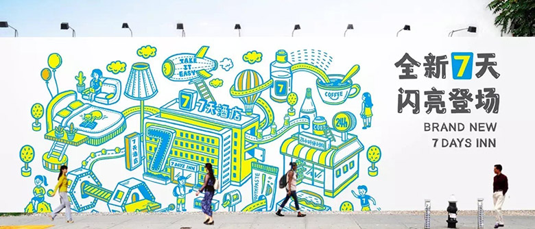 除了在理念、设计和服务上做出别具一格的创变外,升级举措中的VI形象升级也甚是亮眼。明快的配色和简洁的设计,7天用萌趣十足的二次元文化与顾客进行沟通,传递与众不同的7天,及其年轻活力的品牌形象和亲切有爱的品牌文化。