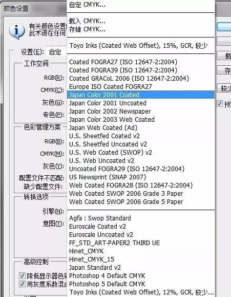 Coated,涂布,是指纸张类型,我们通常所说的铜版纸就是这类。 Uncoated,未涂布,通常印刷书刊内页的胶版纸所属。 Newspaper,新闻纸。 Web,是指印刷方式采用的轮转胶印机印刷。 Ad,广告类,是指针对广告需求的色彩控制。