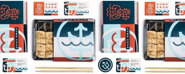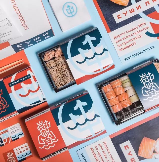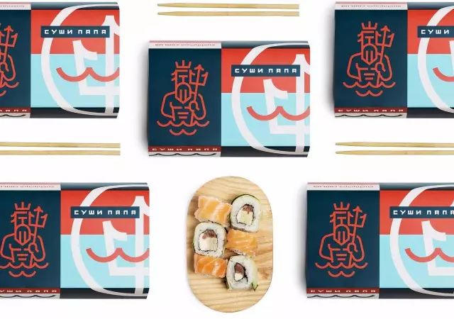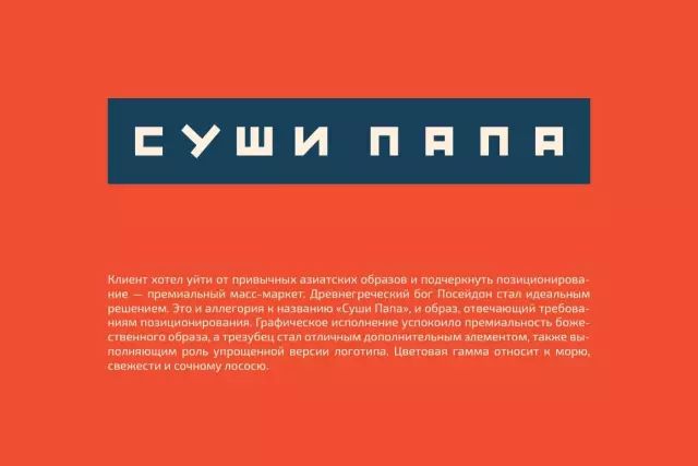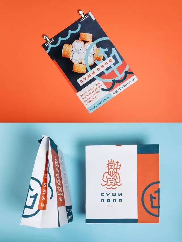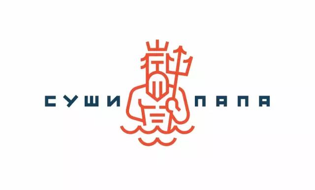 同属战斗民族血脉的乌克兰也是如此风格,名为 Суши Папа (英文是 Sushi Papa ,寿司爸爸的意思……) 是乌克兰的一个寿司外卖品牌,他们的LOGO采用希腊神话中的海神波塞冬作为形象,以扁平风格的插画描绘出一个极具现代感的“波塞冬大叔”。